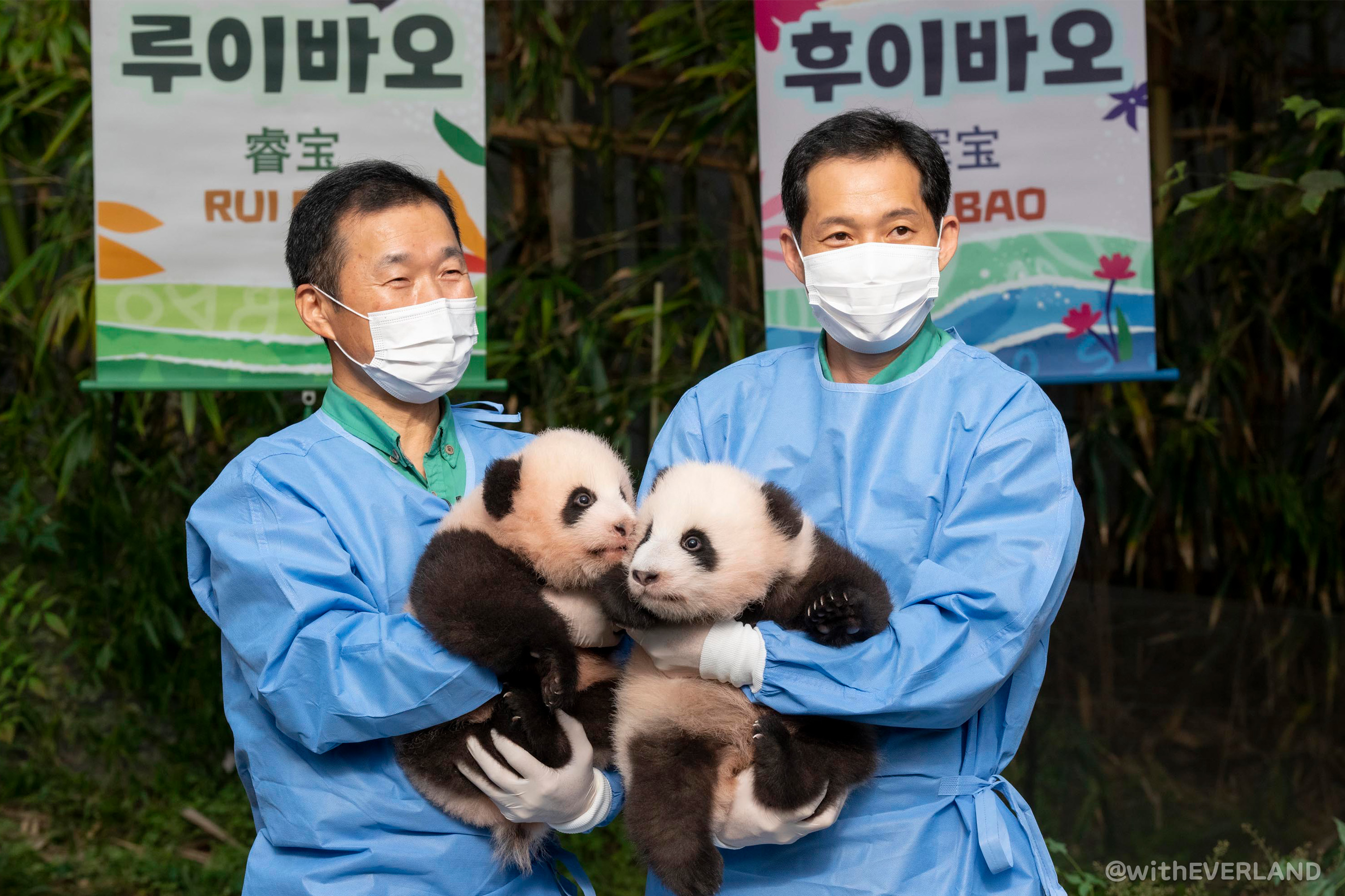각각 '슬기로운 보물'과 '빛나는 보물'이라는 의미를 가진 아기 판다들의 이름은 8월 24일부터 10월 6일까지 40여 일간 진행된 대국민 이름 공모 이벤트를 통해 선정됐다.