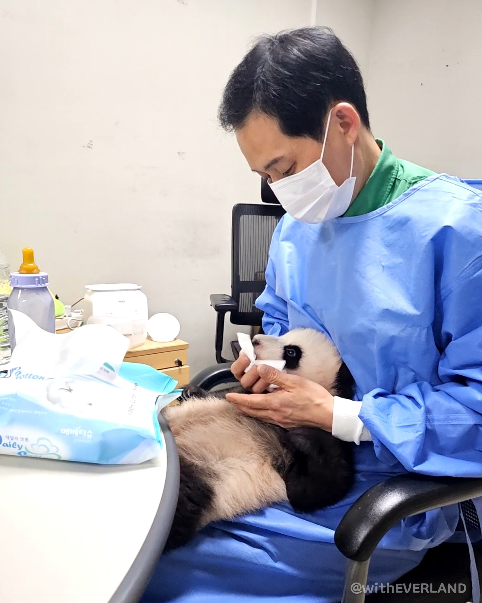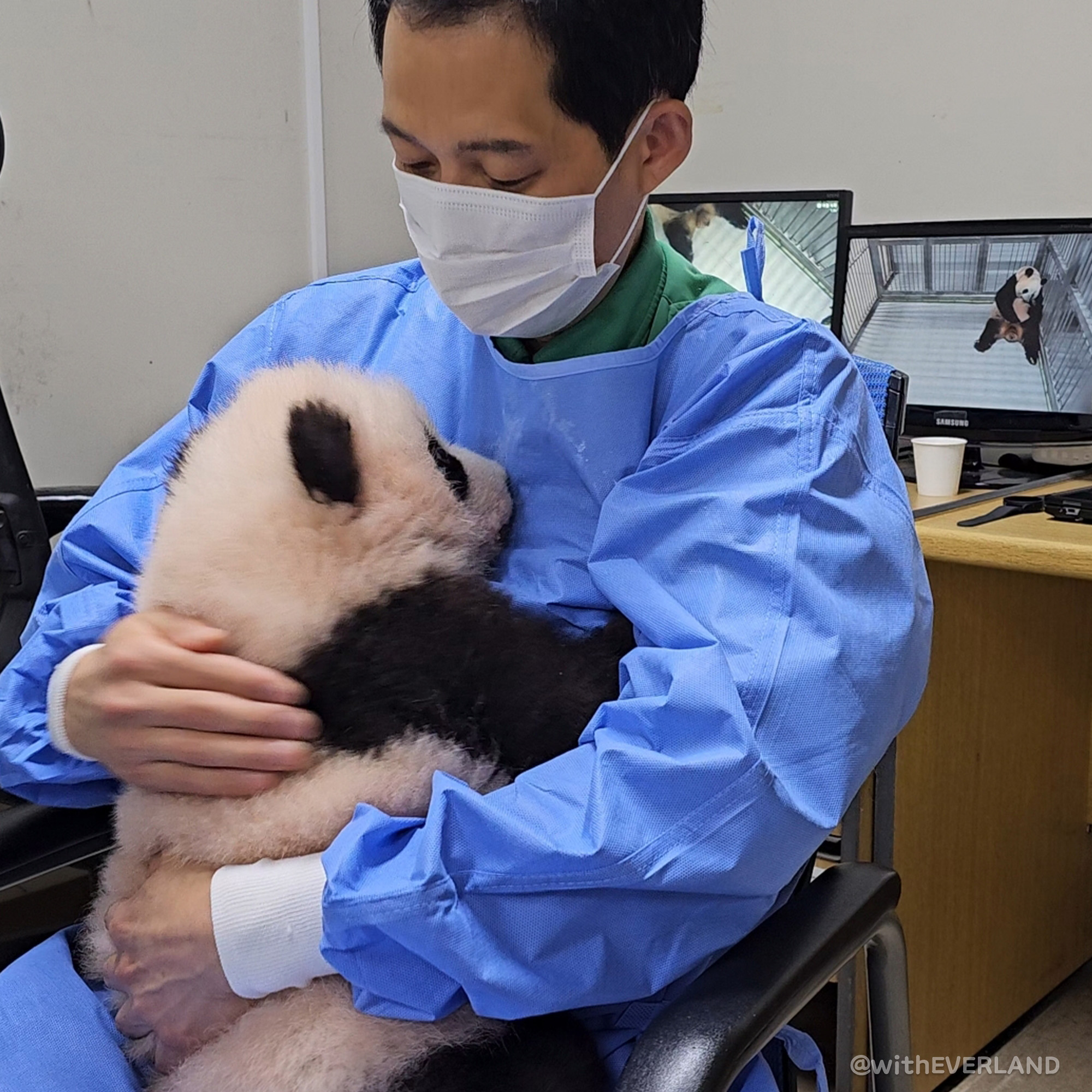 사육사, 수의사 등 에버랜드 동물원 임직원들과 중국 판다보호 연구센터에서 온 전문가의 극진한 보살핌도 쌍둥이 아기 판다의 건강한 성장을 돕고 있다.