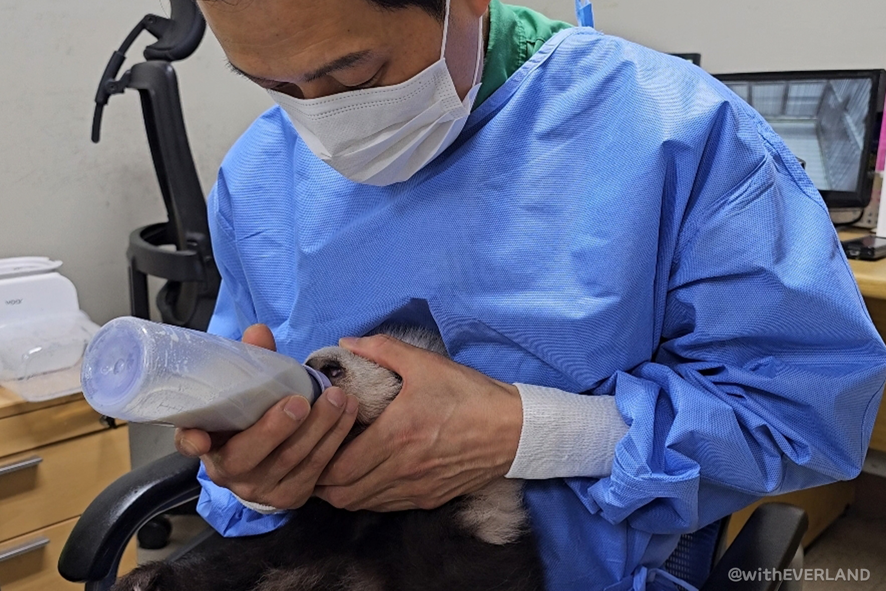 엄마가 쌍둥이 중 한 마리에게 젖을 물리면 다른 한 마리는 포육실로 데려와 사육사가 분유를 먹이고 보살피는 방식이다.