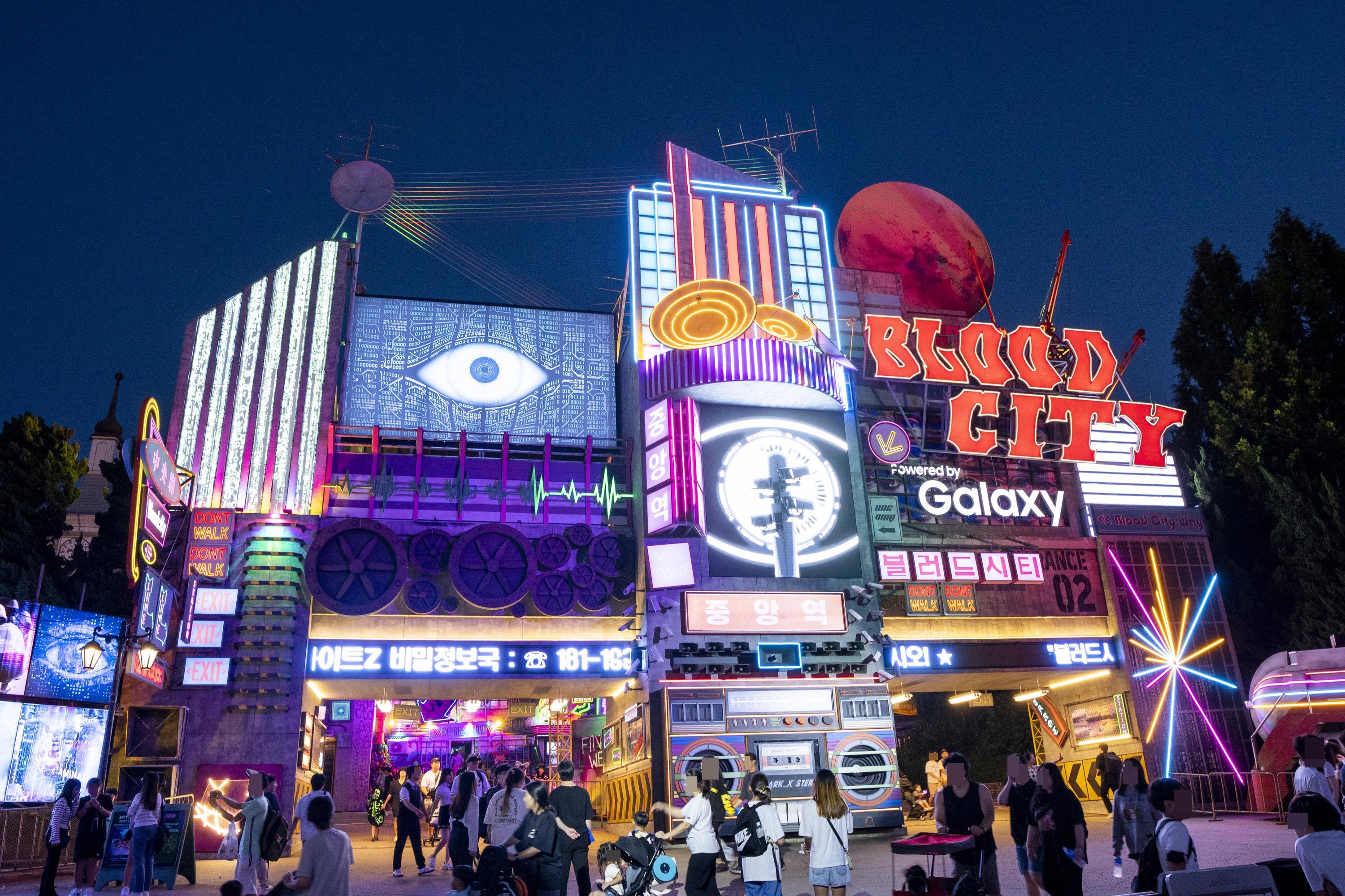 특히 올해는 7번째 시즌을 맞아 삼성전자와의 콜라보를 통해 사이버펑크풍의 미래 도시로 블러드시티를 새롭게 조성하고 갤럭시 Z 플립5·폴드5 등 스마트폰을 활용한 다채로운 체험 콘텐츠를 마련하는 등 이색 경험을 추구하는 MZ세대들을 사로잡고 있다.