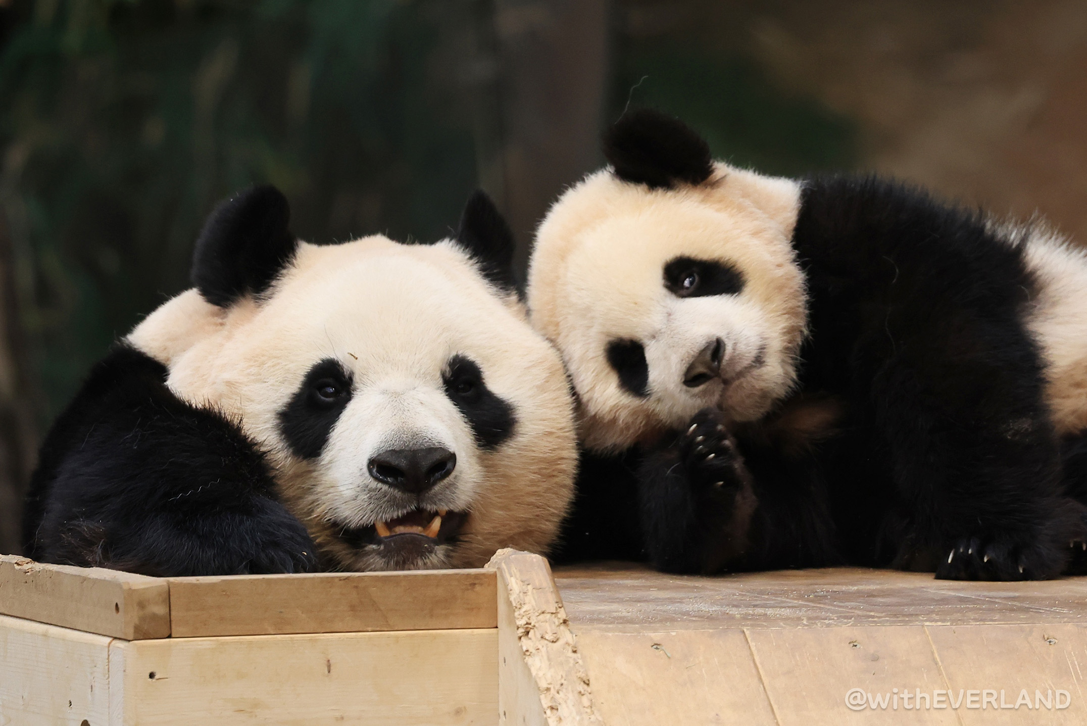 루이와 후이가 마치 "이것 좀 보세요! 어때요, 우리 다리 짧지 않죠~?" 하며 포즈를 취해주는 듯한 장면이 유독 눈에 많이 띄었답니다.