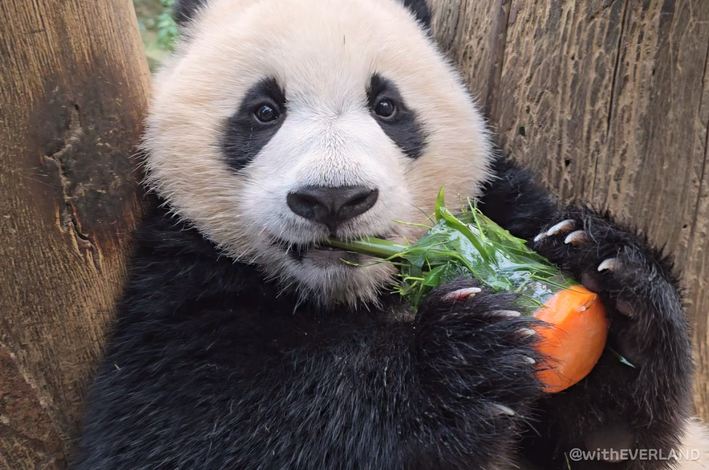 쌍둥이의 영구치가 튼튼하게 자리 잡으면서 대나무, 죽순, 당근 먹는 실력이 더욱더 나아지고 있어요.