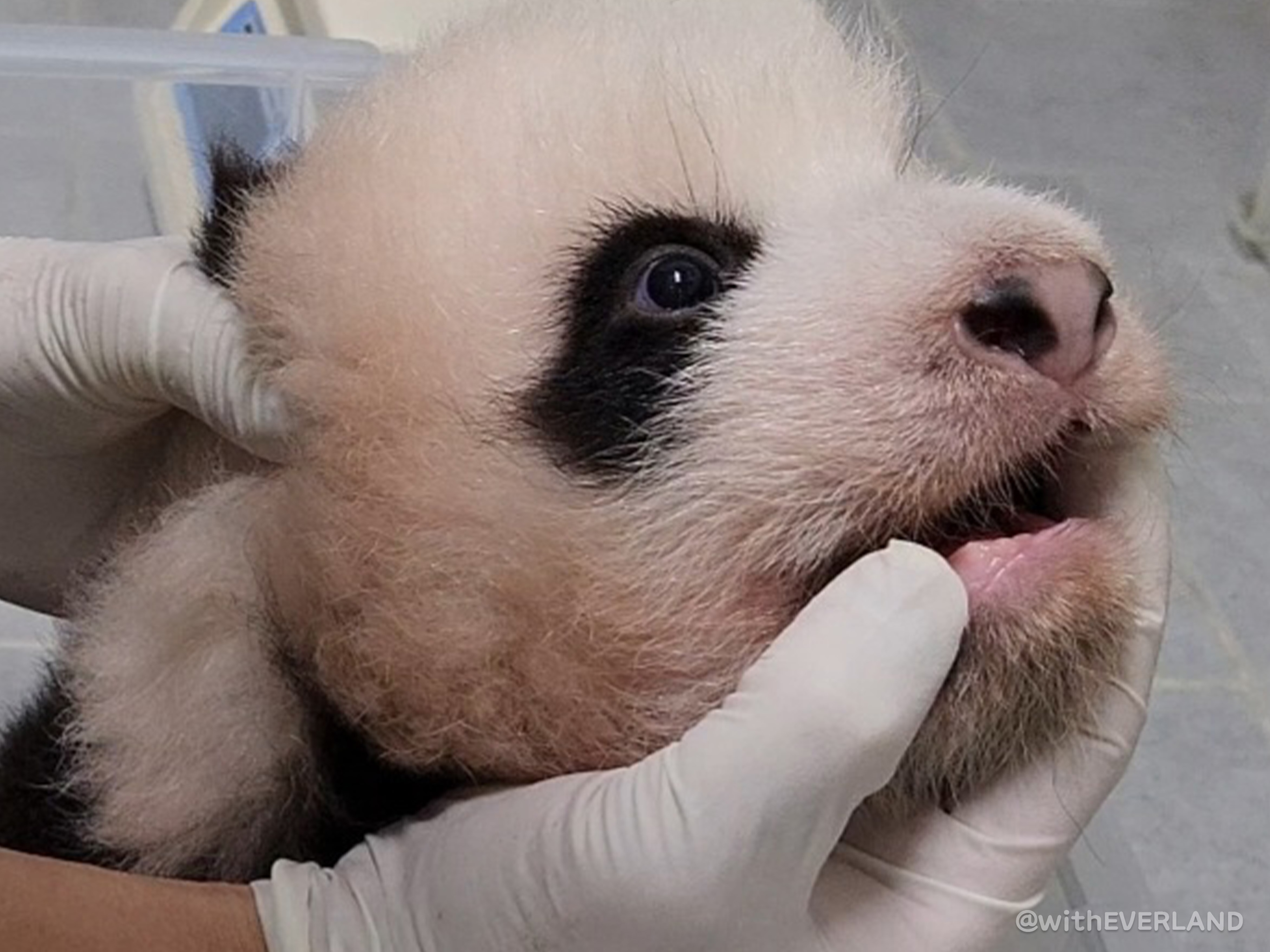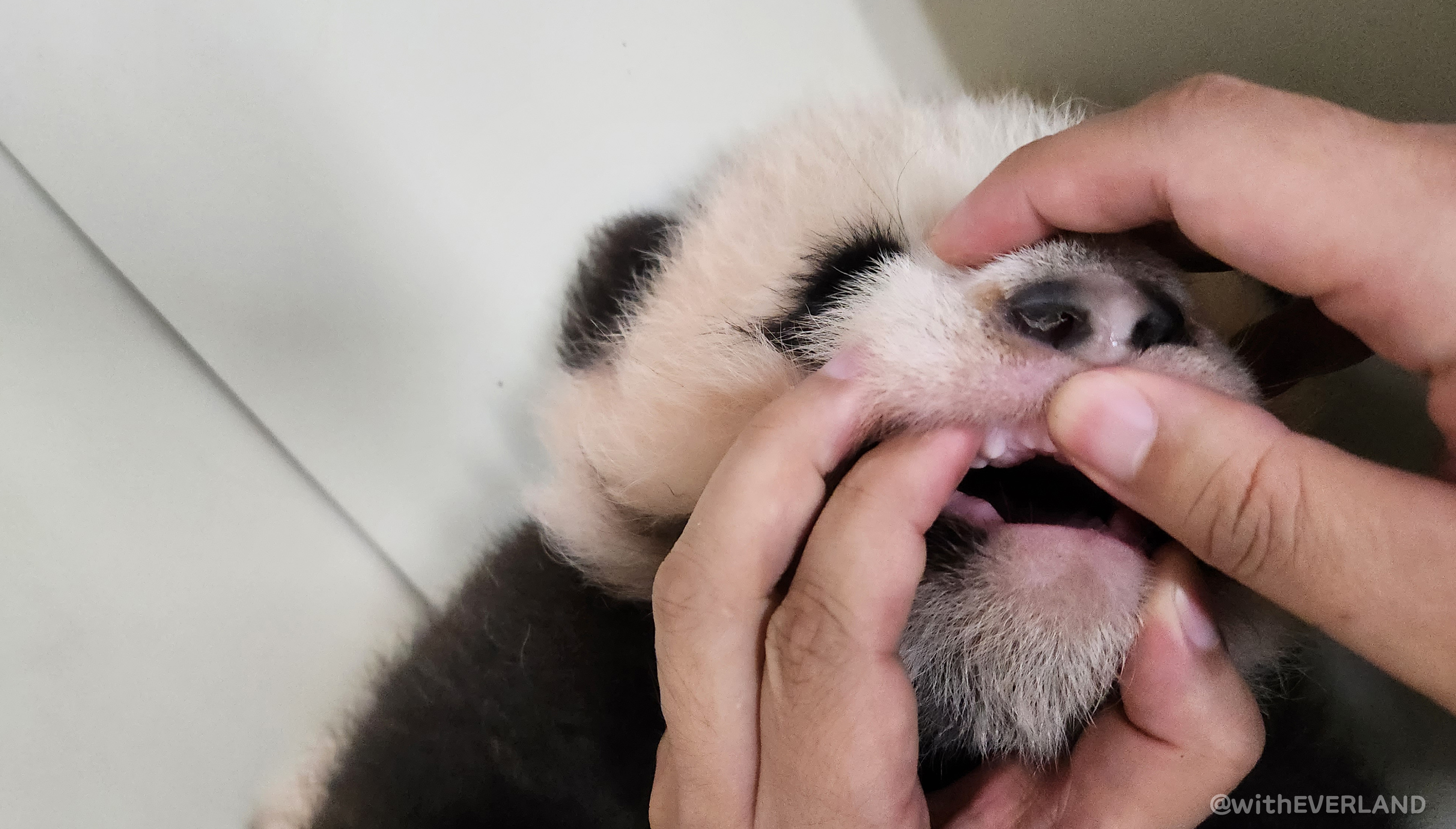 이는 아기 판다의 치아 성장을 확인하는 매우 중요한 일인데요.
