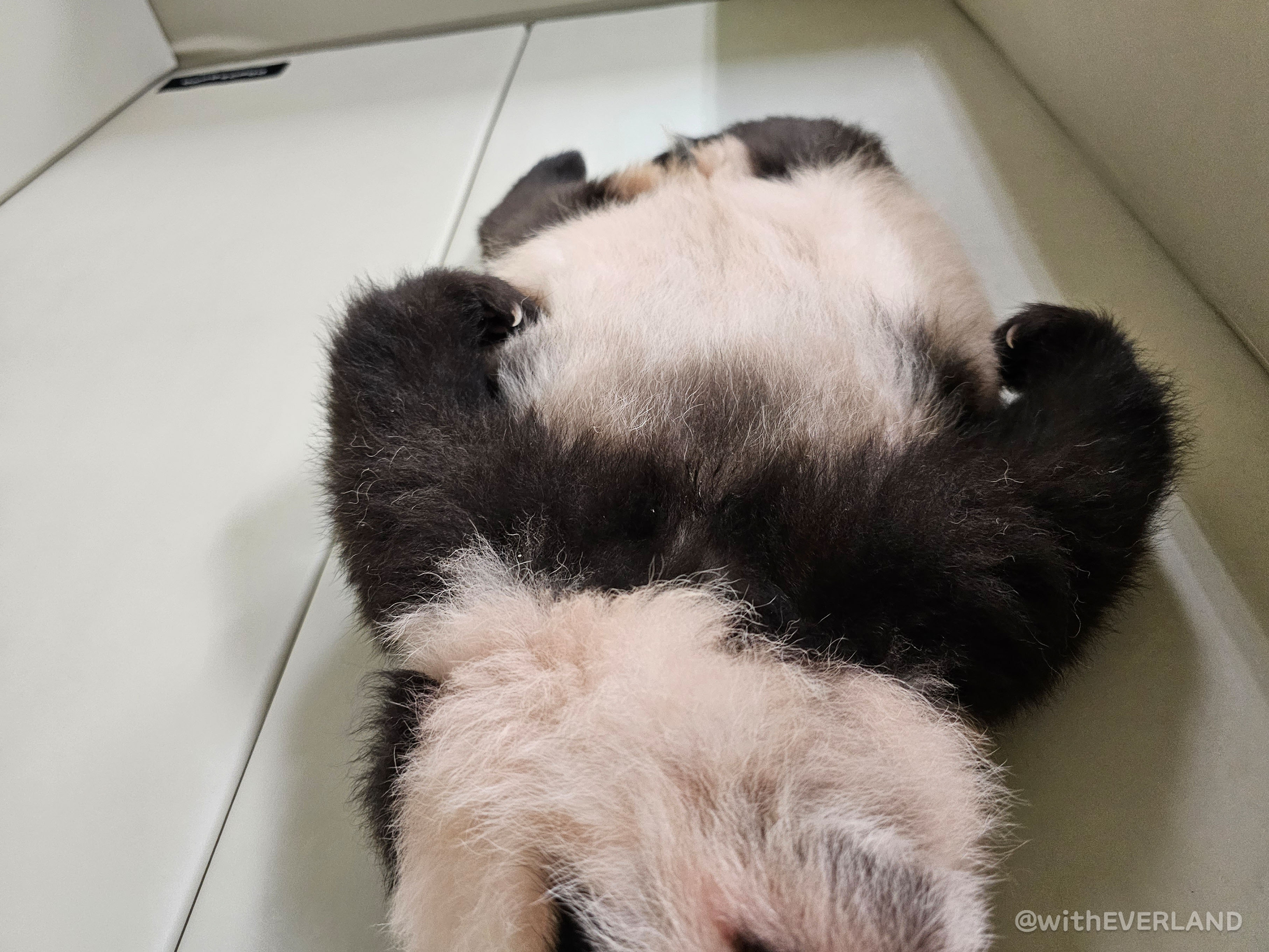 플레이봉이 설치되기 이전의 수면 자세로 돌아간 푸바오의 모습을 보니