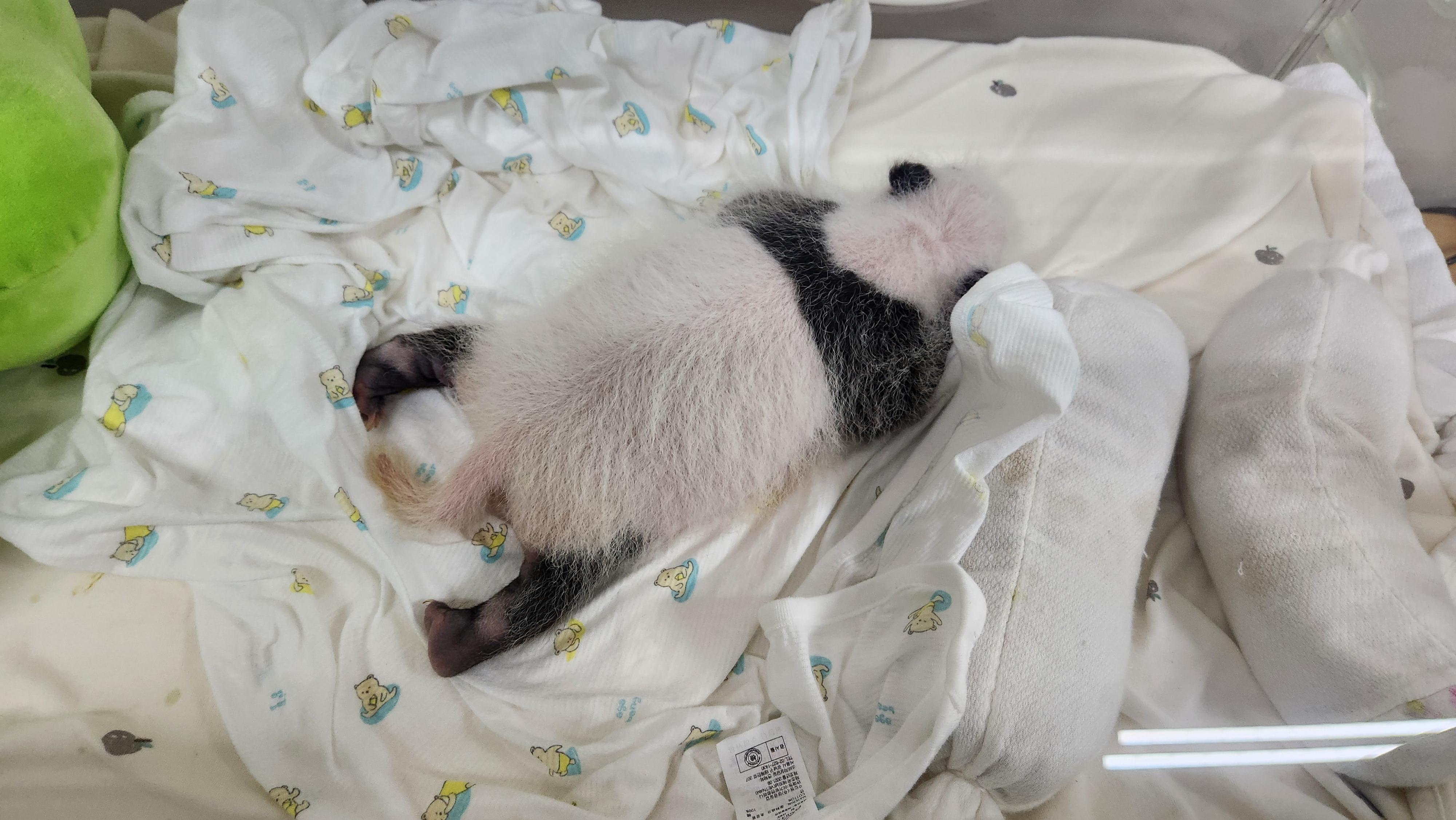 아기판다의 털은 매일매일 더 촘촘해지고 있습니다.