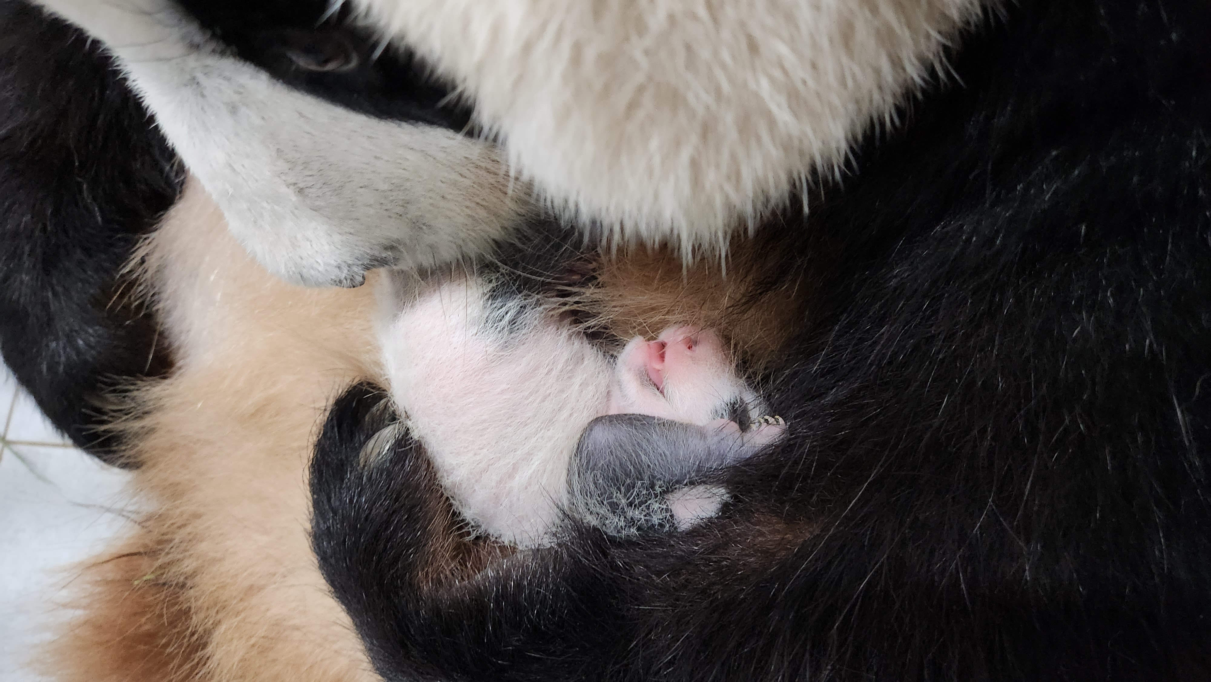 품에 안고 있을 때도 아기판다의 몸 전체가 활짝 개방되고