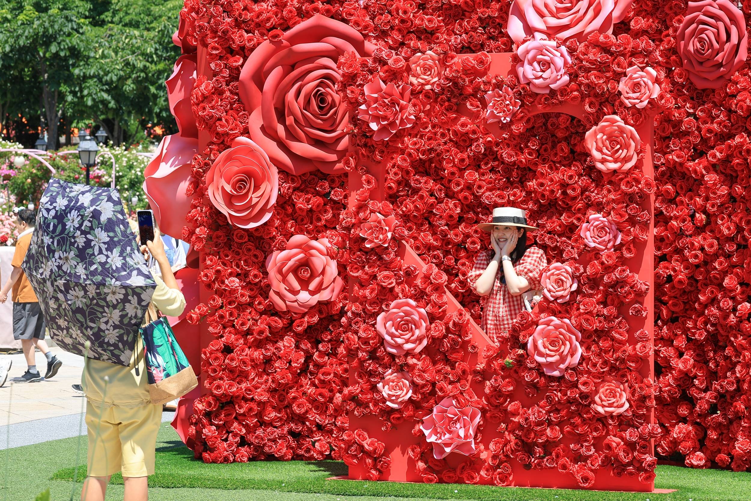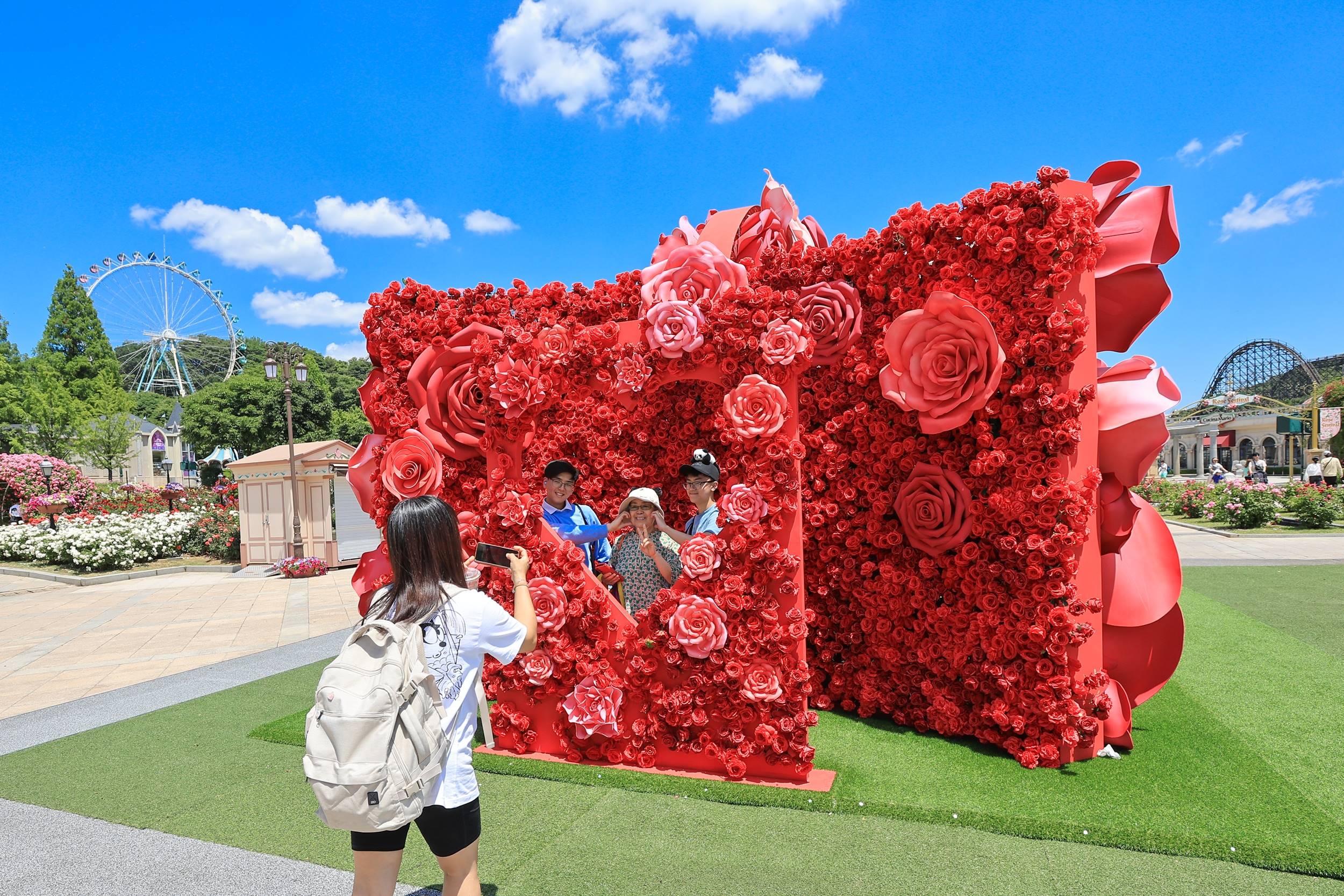 에버랜드는 올해 장미원 중앙에 다양한 크기의 빨간 장미꽃 천여 송이를 형상화한 길이 9미터, 높이 4미터 규모의 장미 시그니처 포토스팟을 새롭게 선보이고 있다.