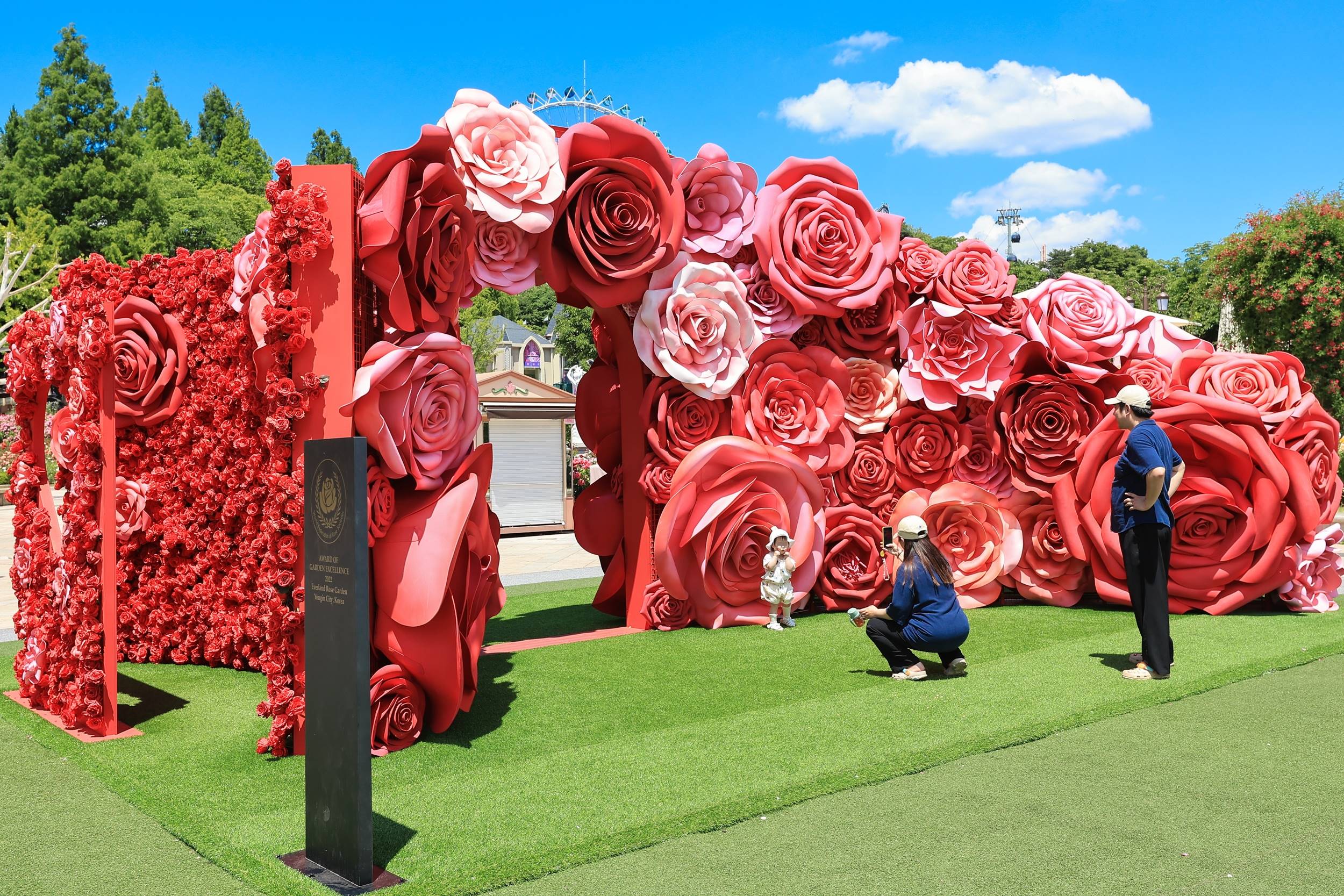 에버랜드 장미원이 2022년 세계 최고의 장미정원에게 수여되는 '어워드 오브 가든 엑설런스(Award of garden excellence)'를 수상한 기념 현판도 함께 볼 수 있다.