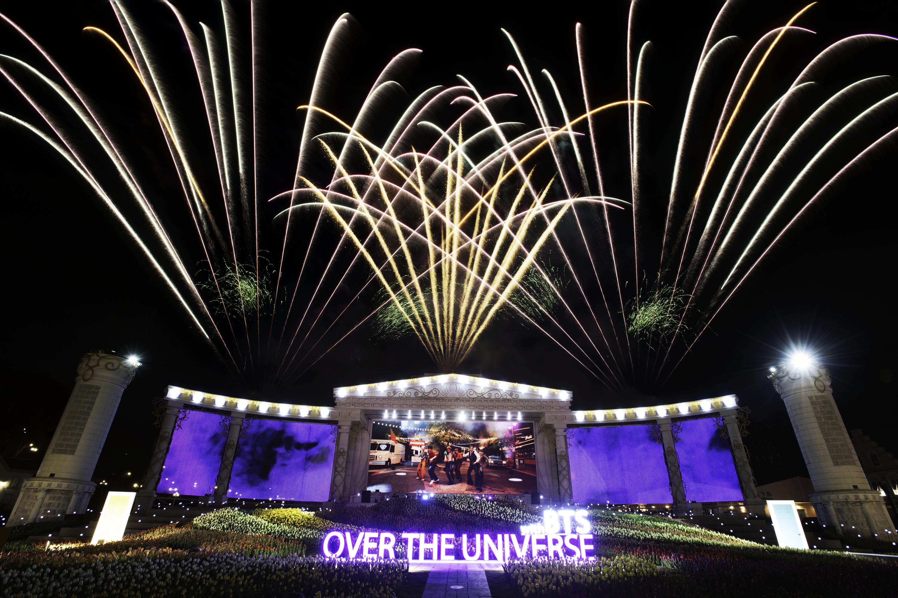 매일 밤 방탄소년단(BTS) 멀티미디어 불꽃쇼 '오버 더 유니버스'가 진행되는 포시즌스가든에서는 하이브 소속 아이돌 그룹의 뮤직라이팅쇼가 5월 20일부터 매월 릴레이로 펼쳐진다.