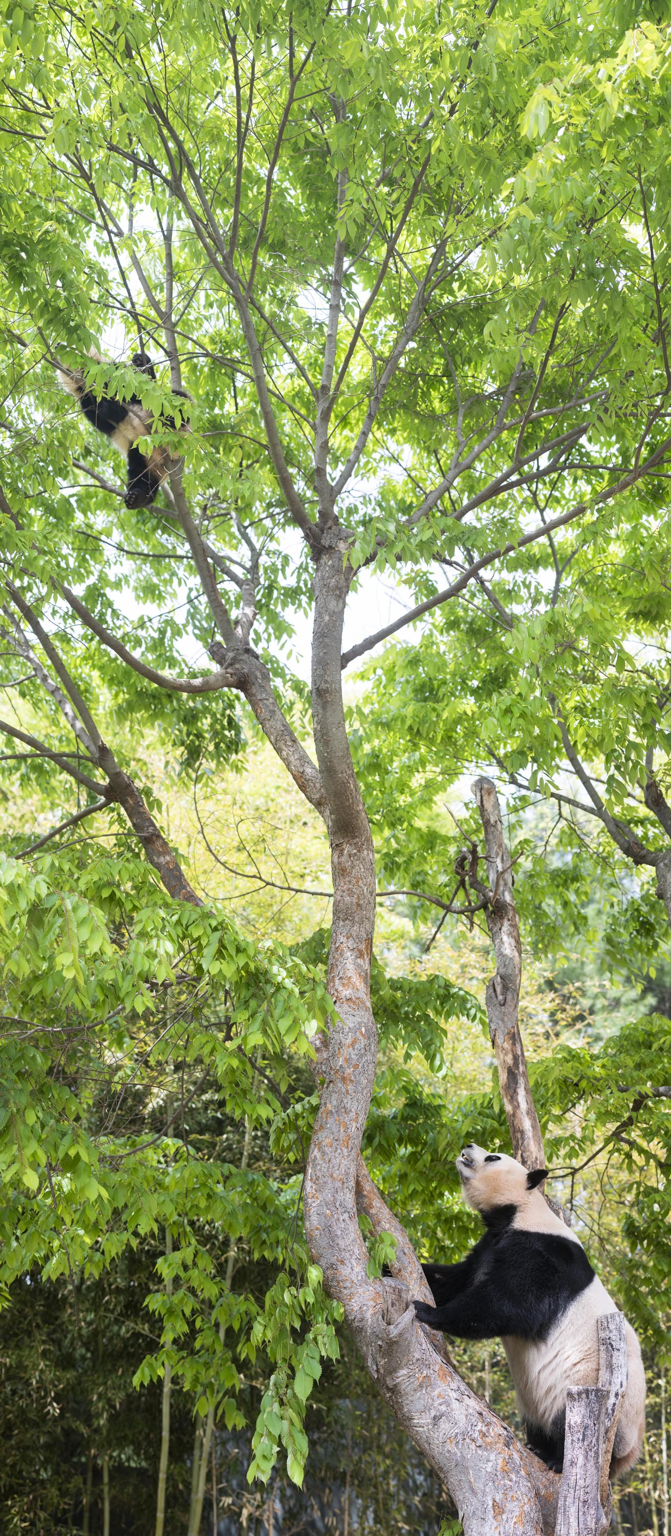 판다들은 본능적으로 천적으로부터의 보호를 위해 높은 곳으로 올라가려는 습성이 있지만, 푸바오가 높은 나무를 오르는 데에는 또 다른 이유가 있는 것 같아요.