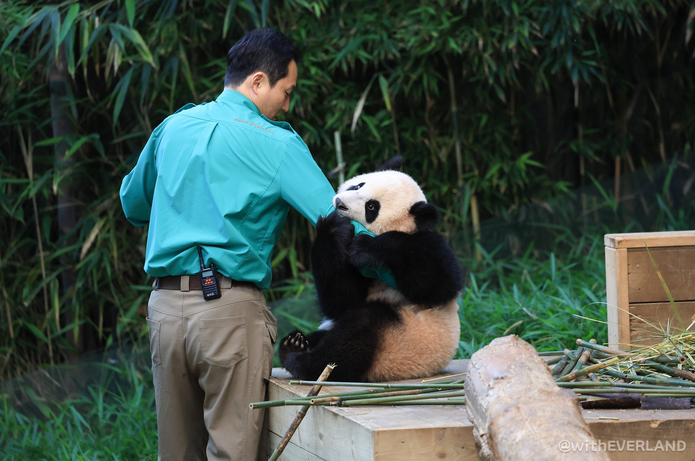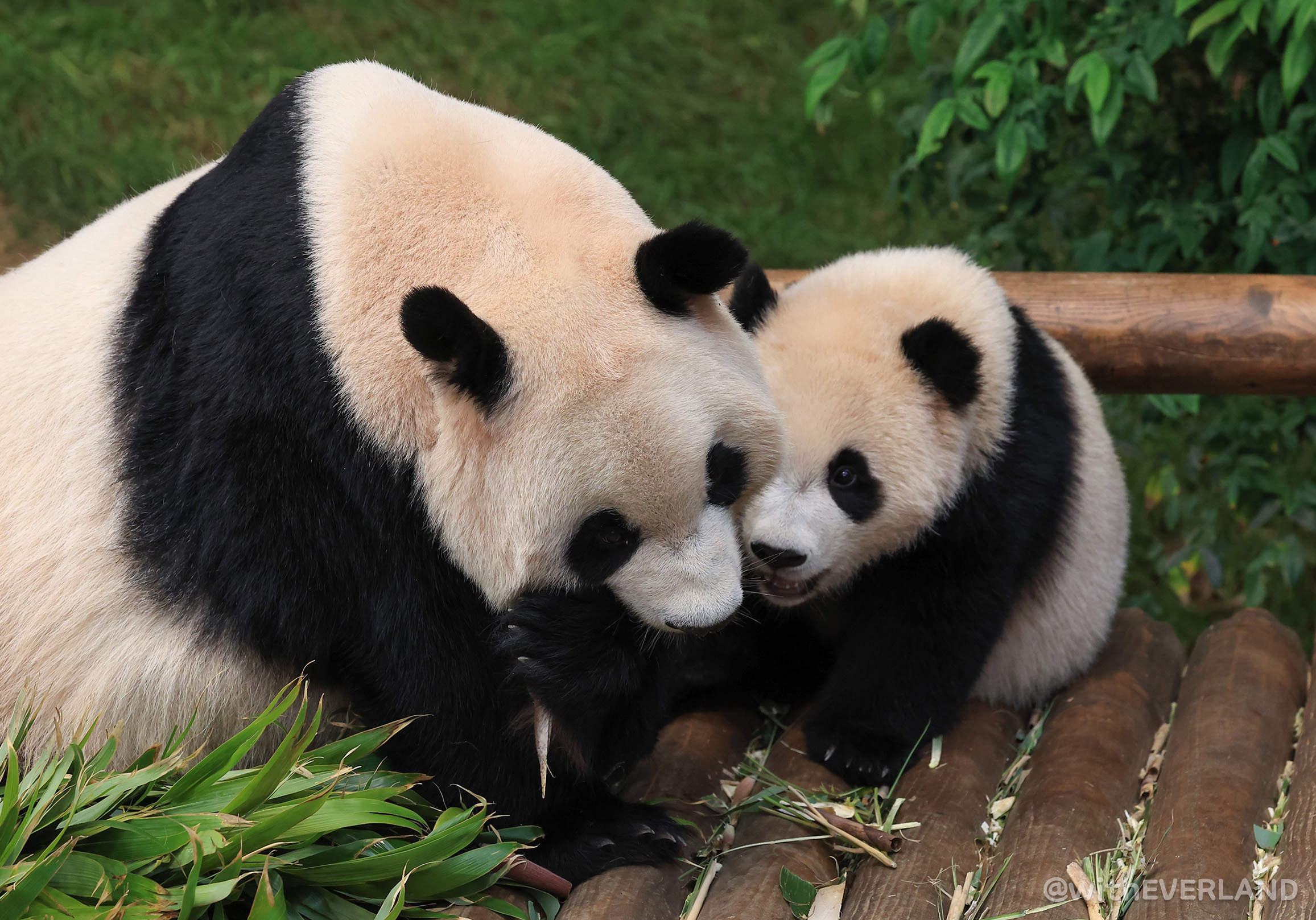 루이와 후이에게 긍정적인 자극이 되는 '댓잎 모히토'를 이리저리 만지고 몸에 비비면서 가지고 노는 사랑스러운 장면이 이번 '판다와쏭'에 충분히 담겼으니 기대해 주세요. ^^*