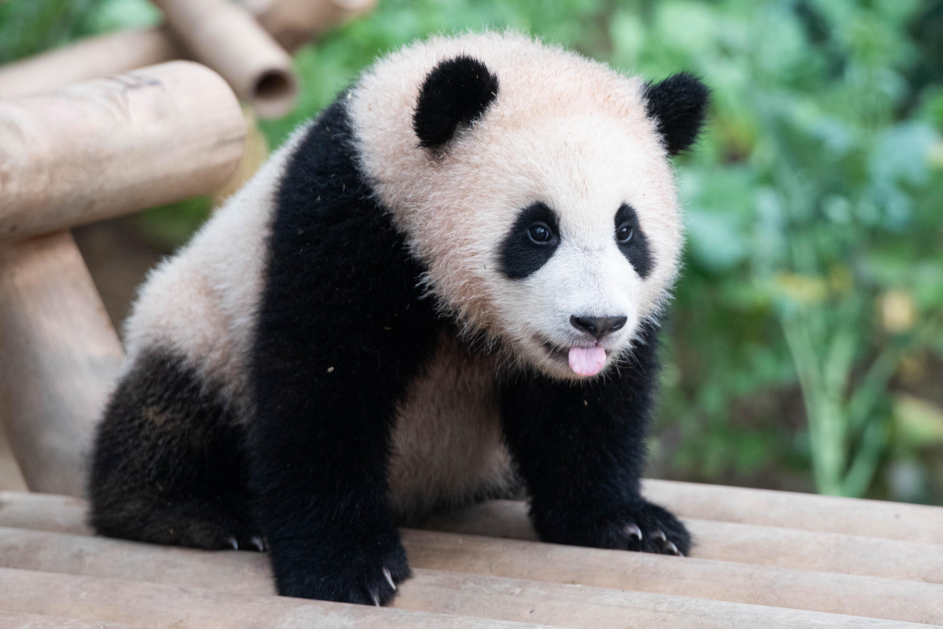 종종 마른 맹종죽 대나무의 잎을 씹어 먹기도 하고, 엄마가 대나무를 먹을 때 푸바오에게도 대나무를 주면 엄마를 따라 오랫동안 씹고 있는 모습을 볼 수 있지요.