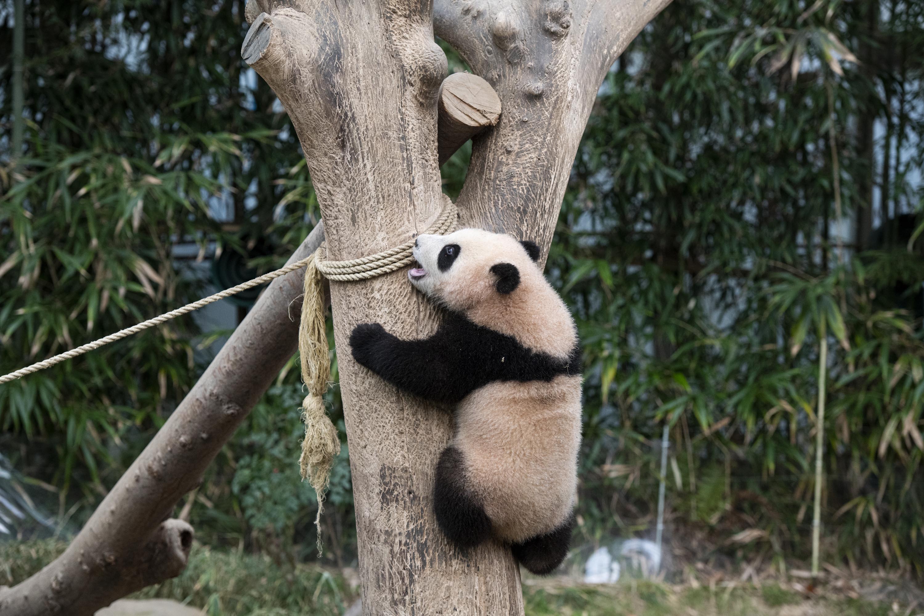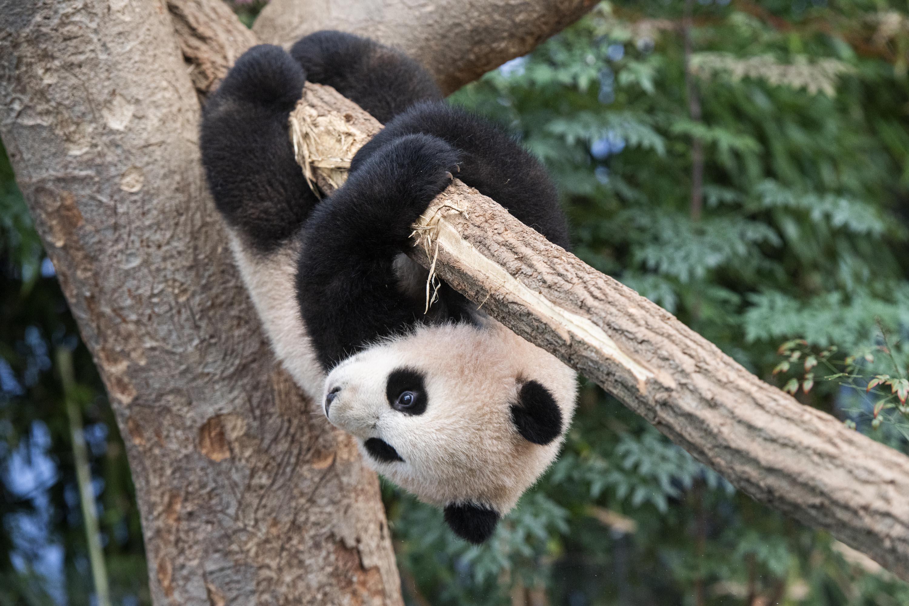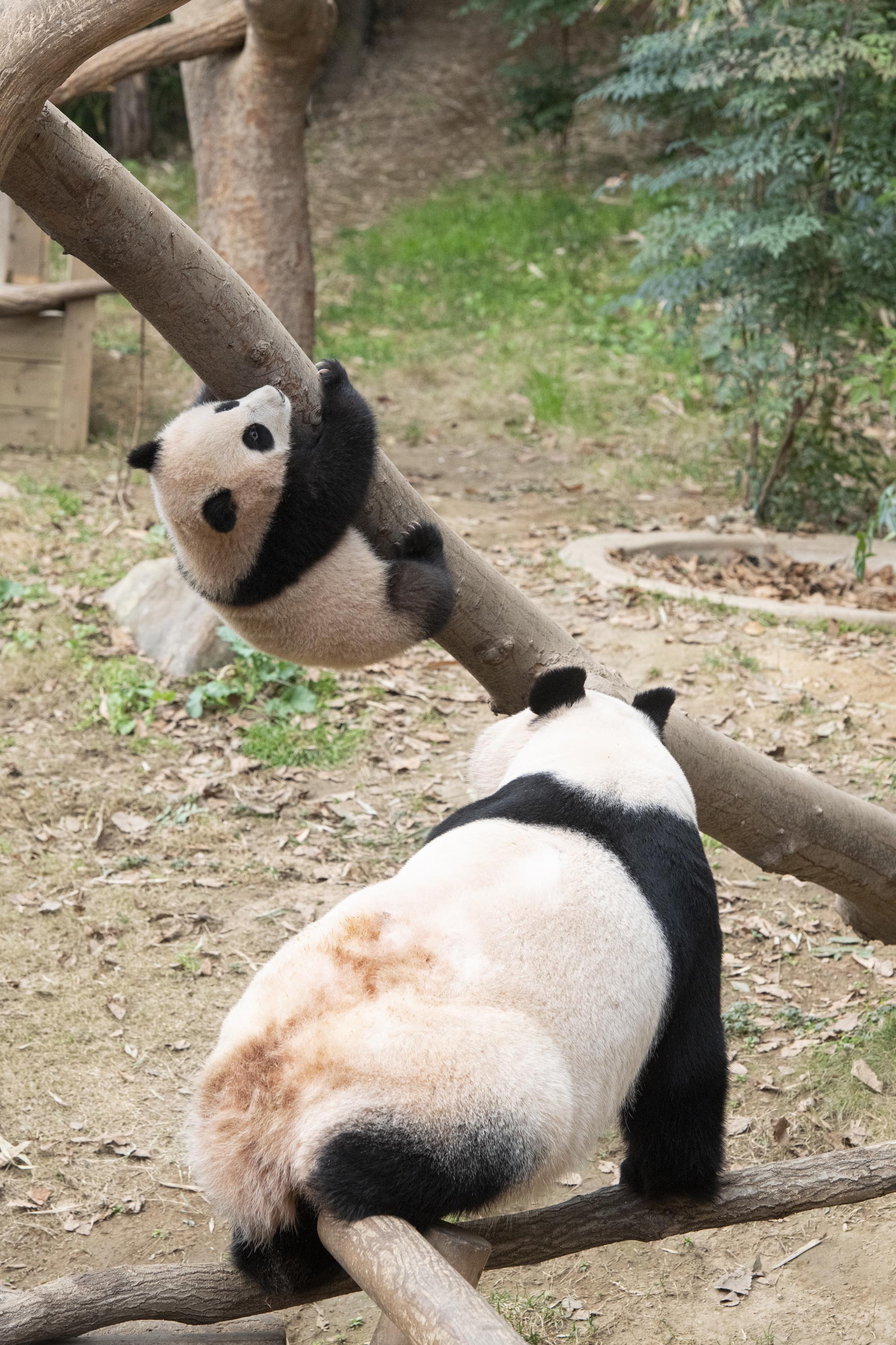 야생에서도 이렇게 아기 판다가 나무를 잘 타게 되면 엄마 판다는 그만큼 안심하고 편안하게 휴식을 취할 수 있습니다.