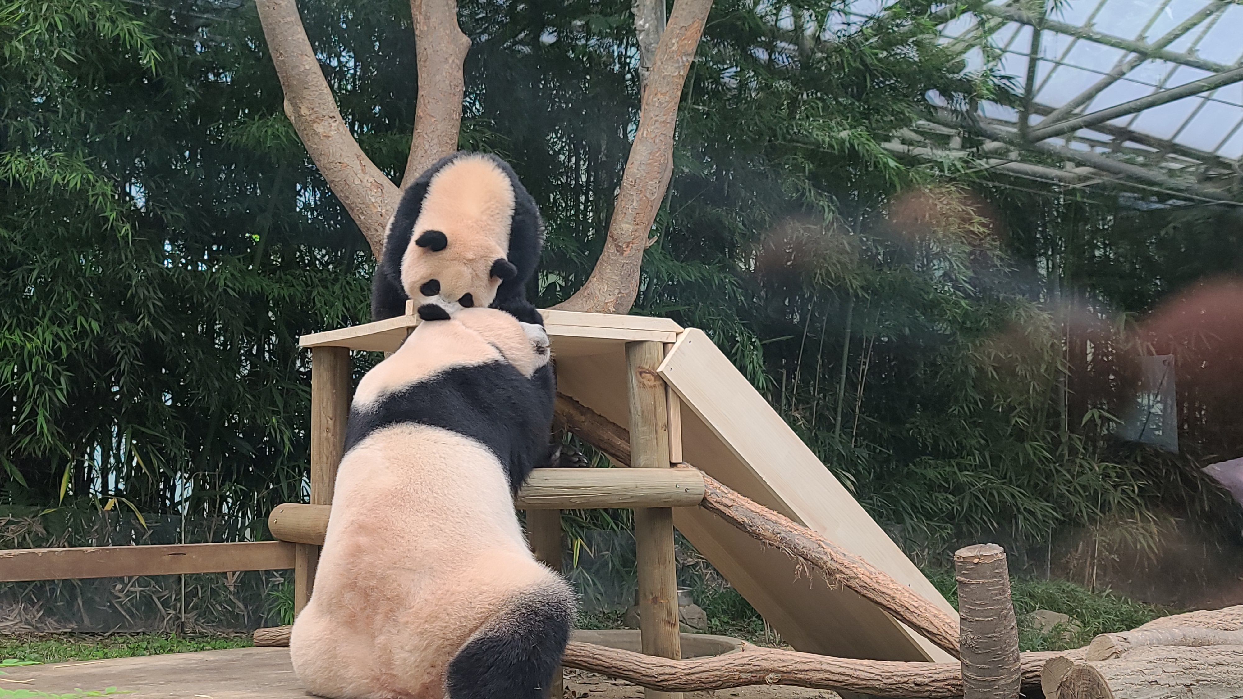 아는 분들도 계시겠지만 여름에도 밖으로 나가고 싶을 푸바오를 위해 생일선물로 미끄럼틀을 만들어 선물했습니다.