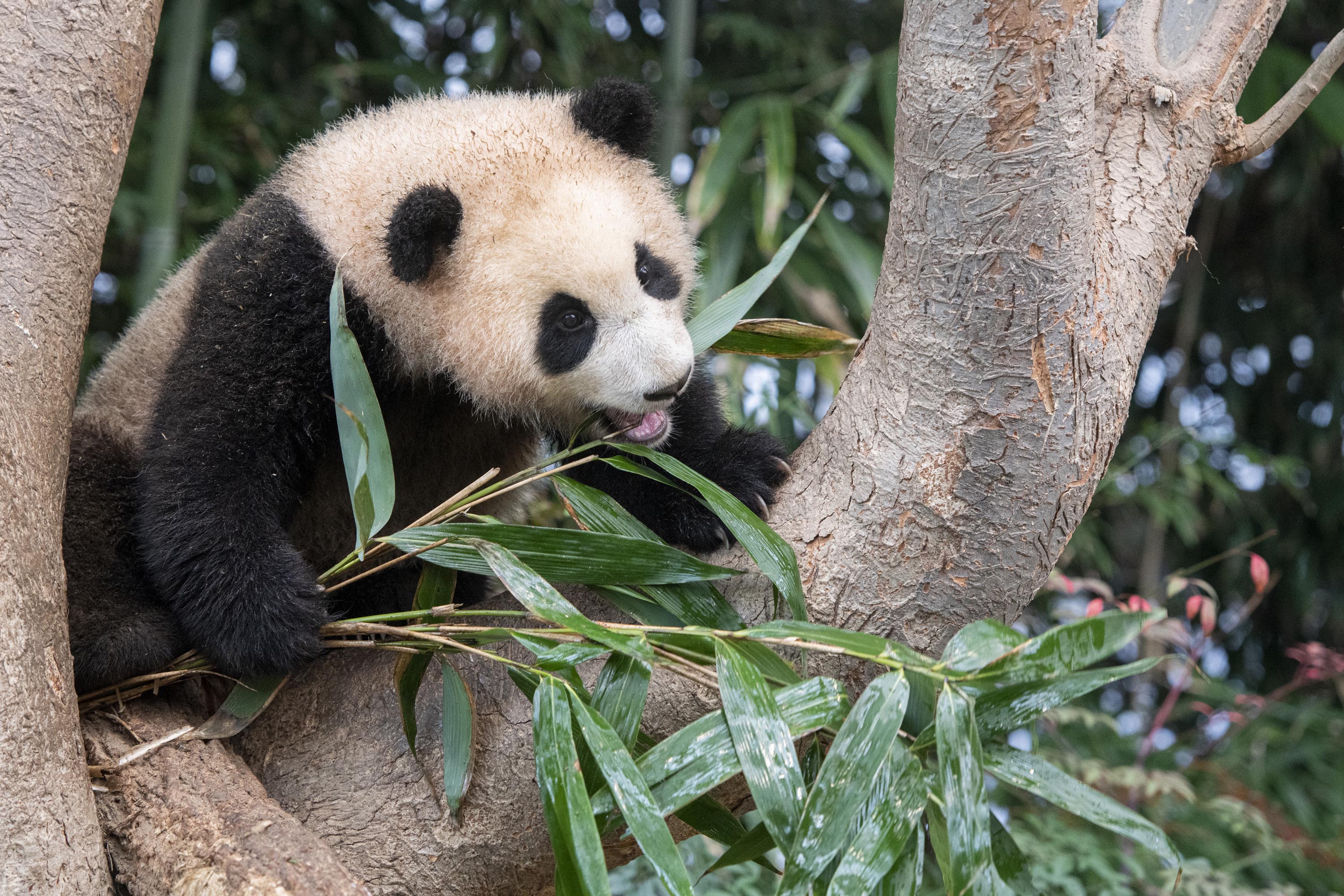이렇게 훌쩍 커버린 푸바오는 요즘 대나무를 소량씩 먹기 시작했습니다.