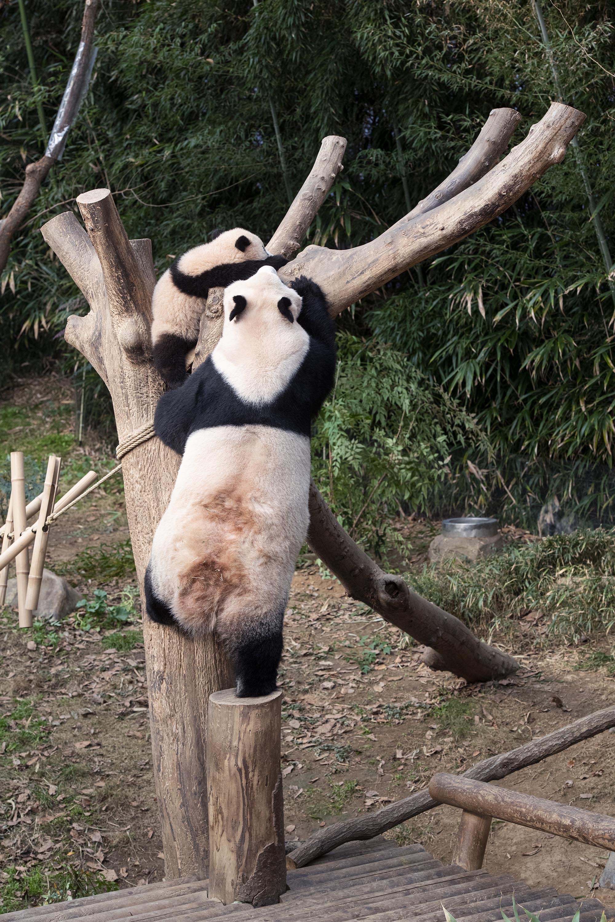야생에서도 이렇게 아기 판다가 나무를 잘 타게 되면 엄마 판다는 그만큼 안심하고 편안하게 휴식을 취할 수 있습니다.