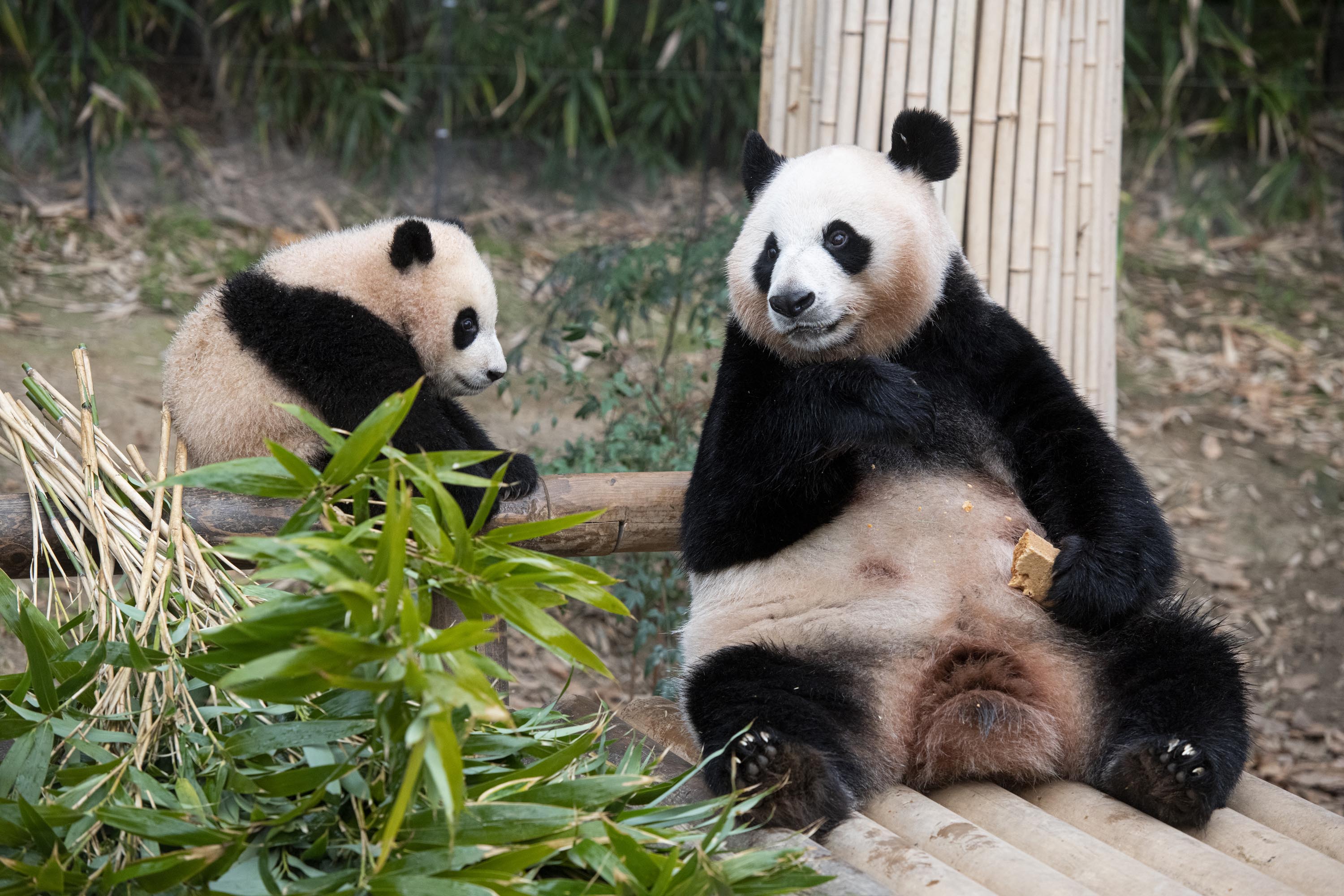 판다는 1년 6개월~2년 정도가 지나면 엄마에게서 떨어져 혼자 살아가야 하는 동물이기 때문에 자연스러운 현상이지요.