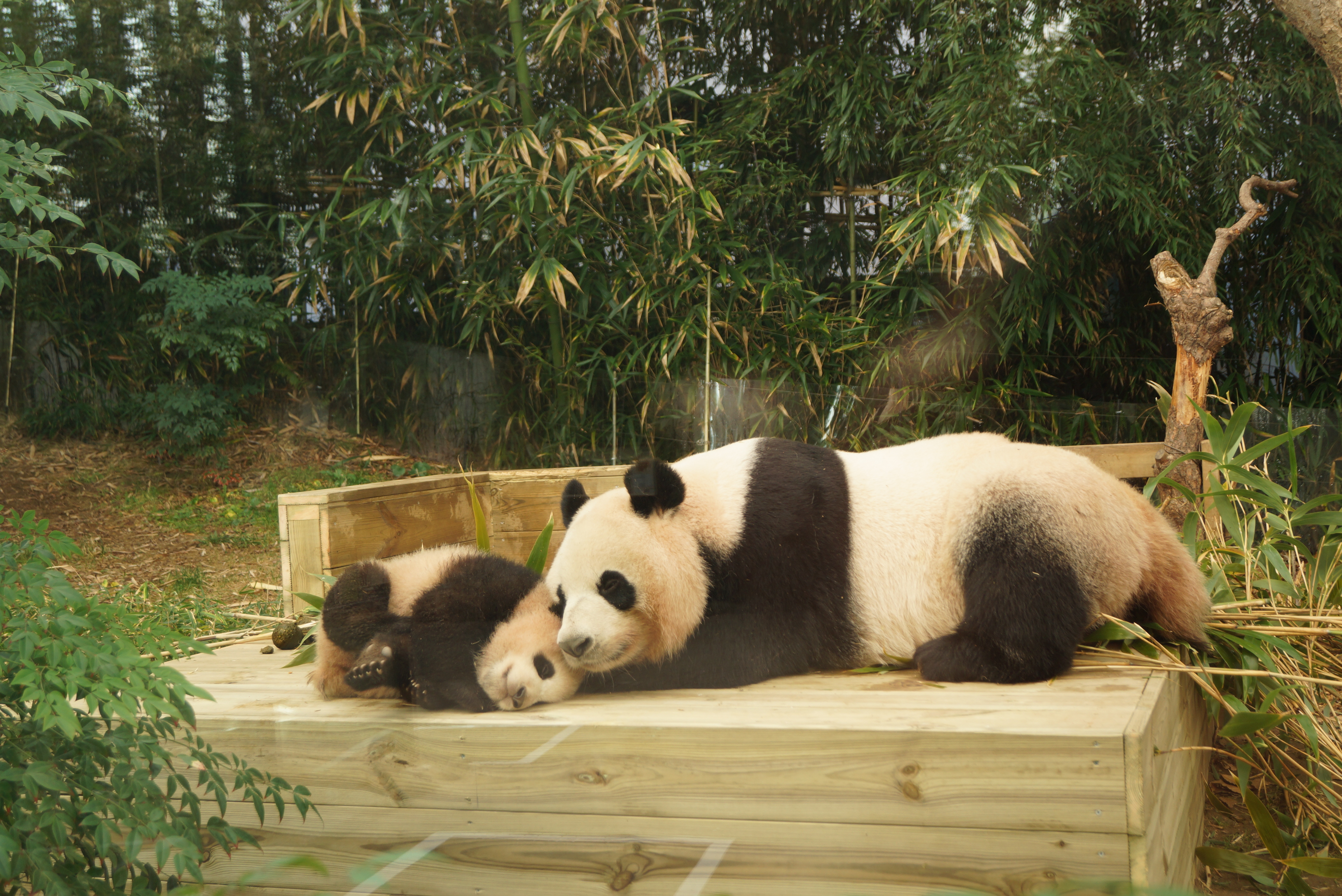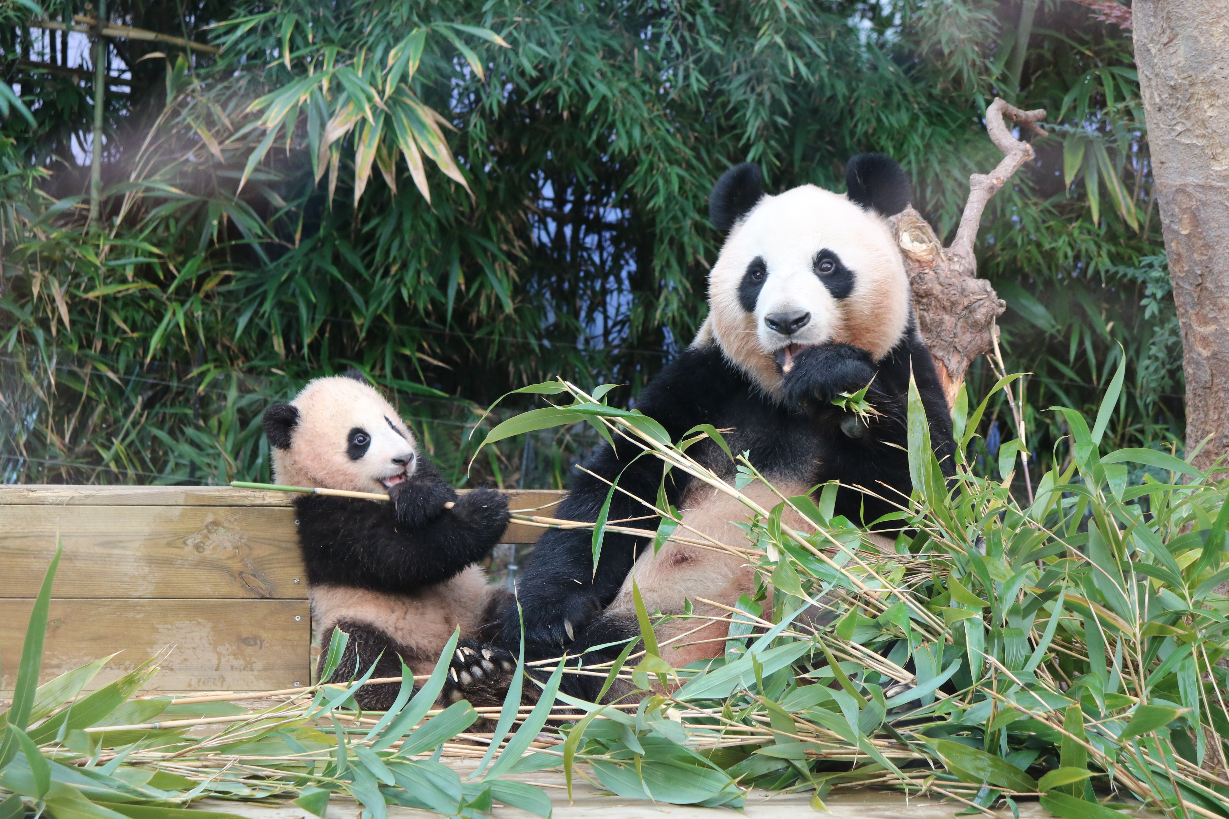 물론 코로나19 예방을 위한 거리두기 방침을 지키기 위해, 그리고 판다 모녀의 적응을 위해 판다월드를 방문하는 시간대와 인원을 제한하고 있어요.