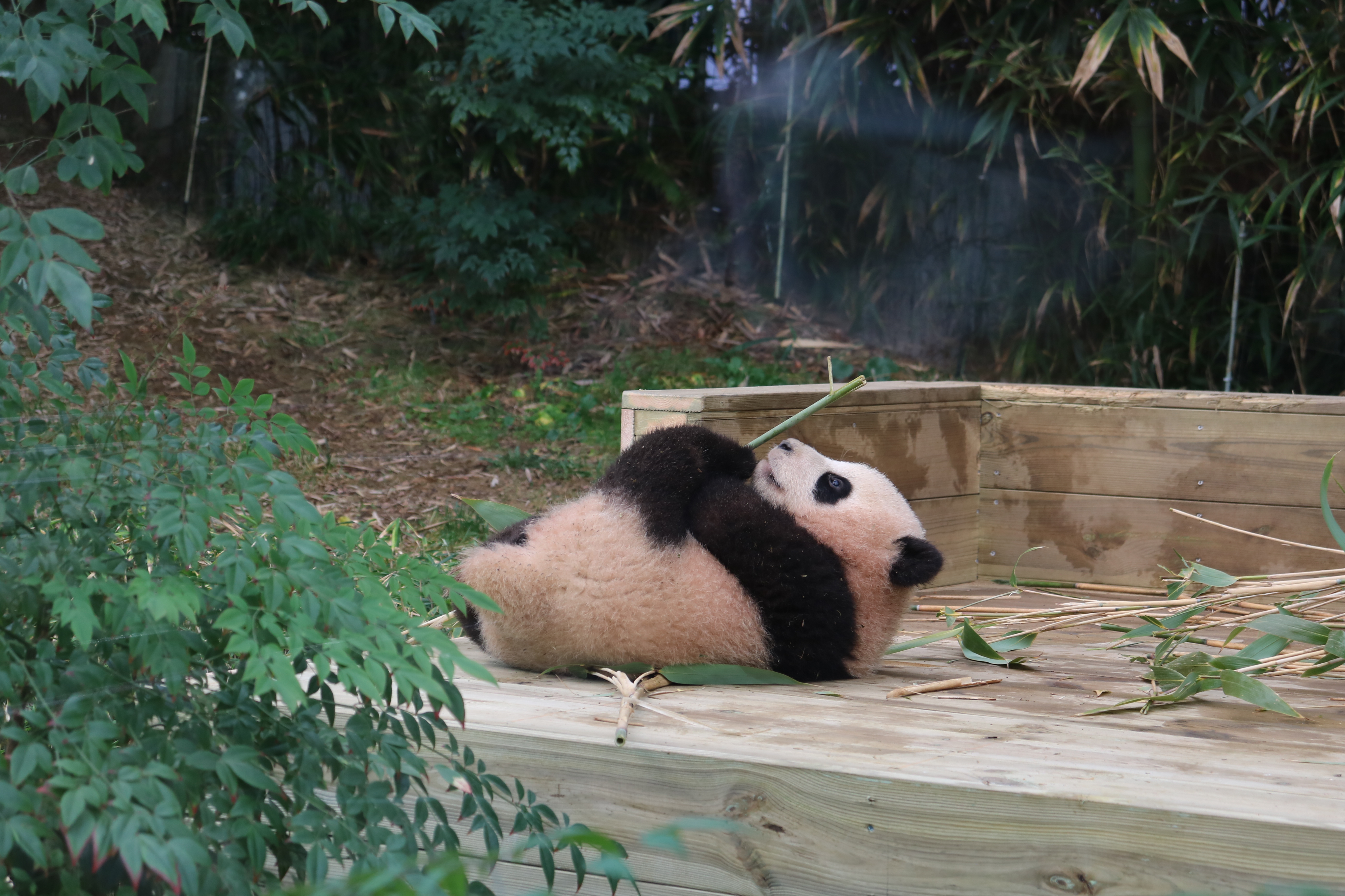 엄마가 먹는 모습을 보고 자라서인지 대나무가 보이면 요즘은 일단 입으로 깨물어보고 보는 호기심 꾸러기입니다.