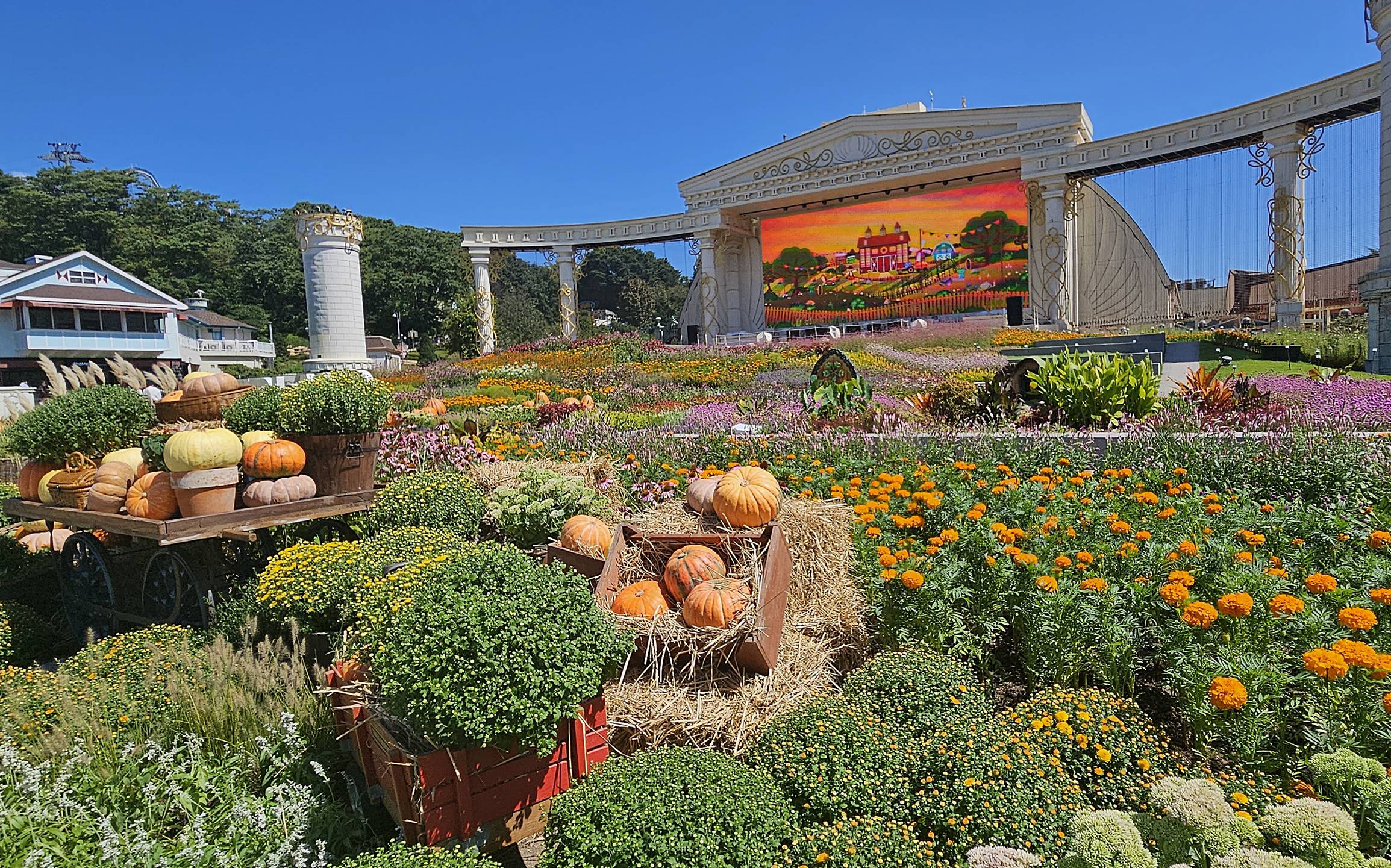 주황빛 메리골드, 바람에 흔들리는 팜파스, 이색 과실수 등 알록달록 피어난 가을 꽃과 열매들이 가득하고, 양배추, 수수, 기장 등 수확을 앞둔 다양한 작물들까지 경험할 수 있다.