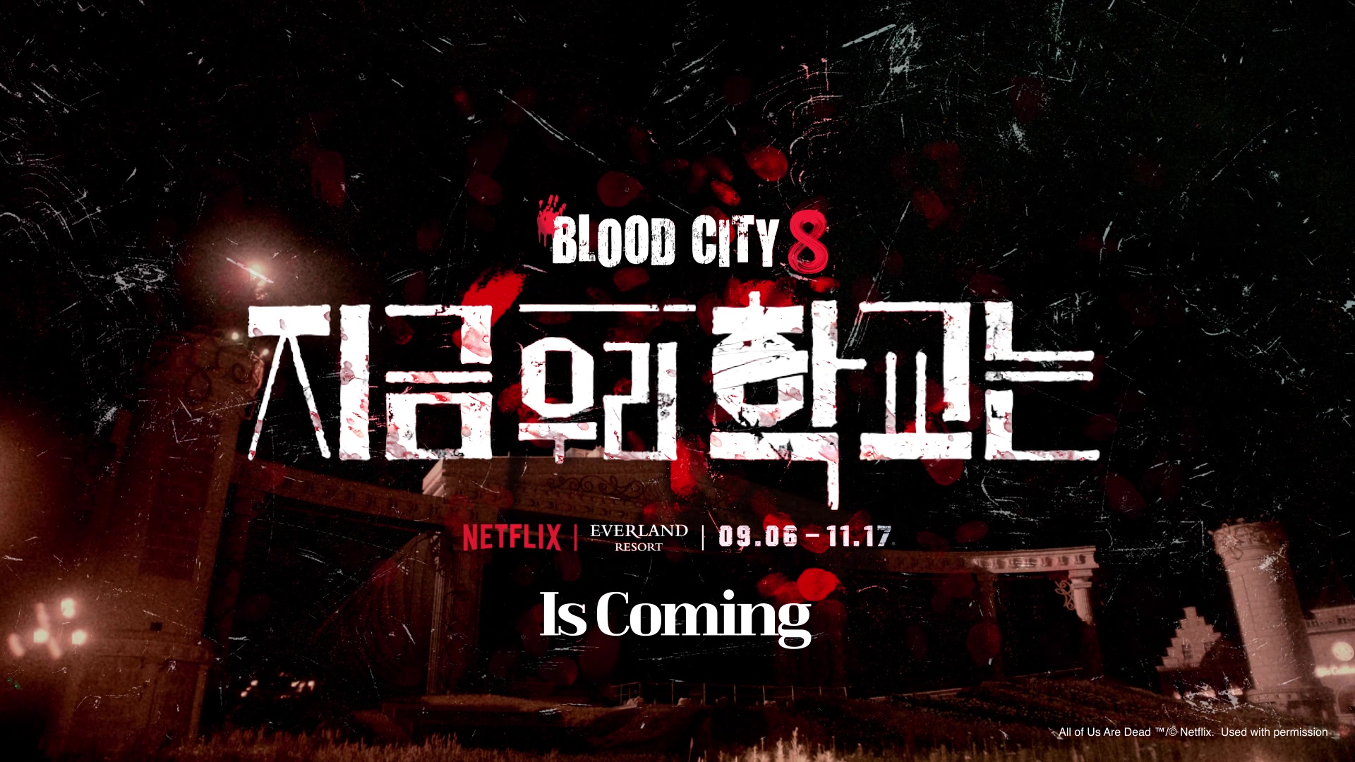 지난 6일부터 11월 17일까지 두 달여간 운영되고 있는 에버랜드 블러드시티에서는 <지금 우리 학교는>, <기묘한 이야기> 등 넷플릭스 인기 IP 시리즈를 몰입감 있게 만나볼 수 있다.