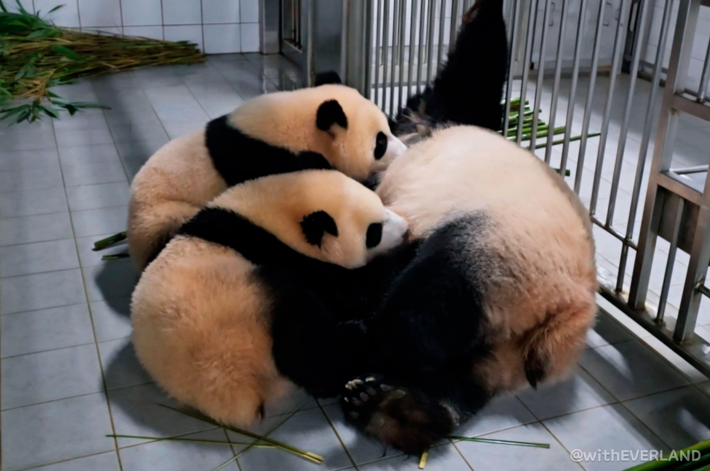 늘 적정한 거리를 조절하면서 따스한 햇볕을 계속 내리쬐어주는 이런 아이바오는 쌍둥이에게 가장 좋은 선생님이랍니다.