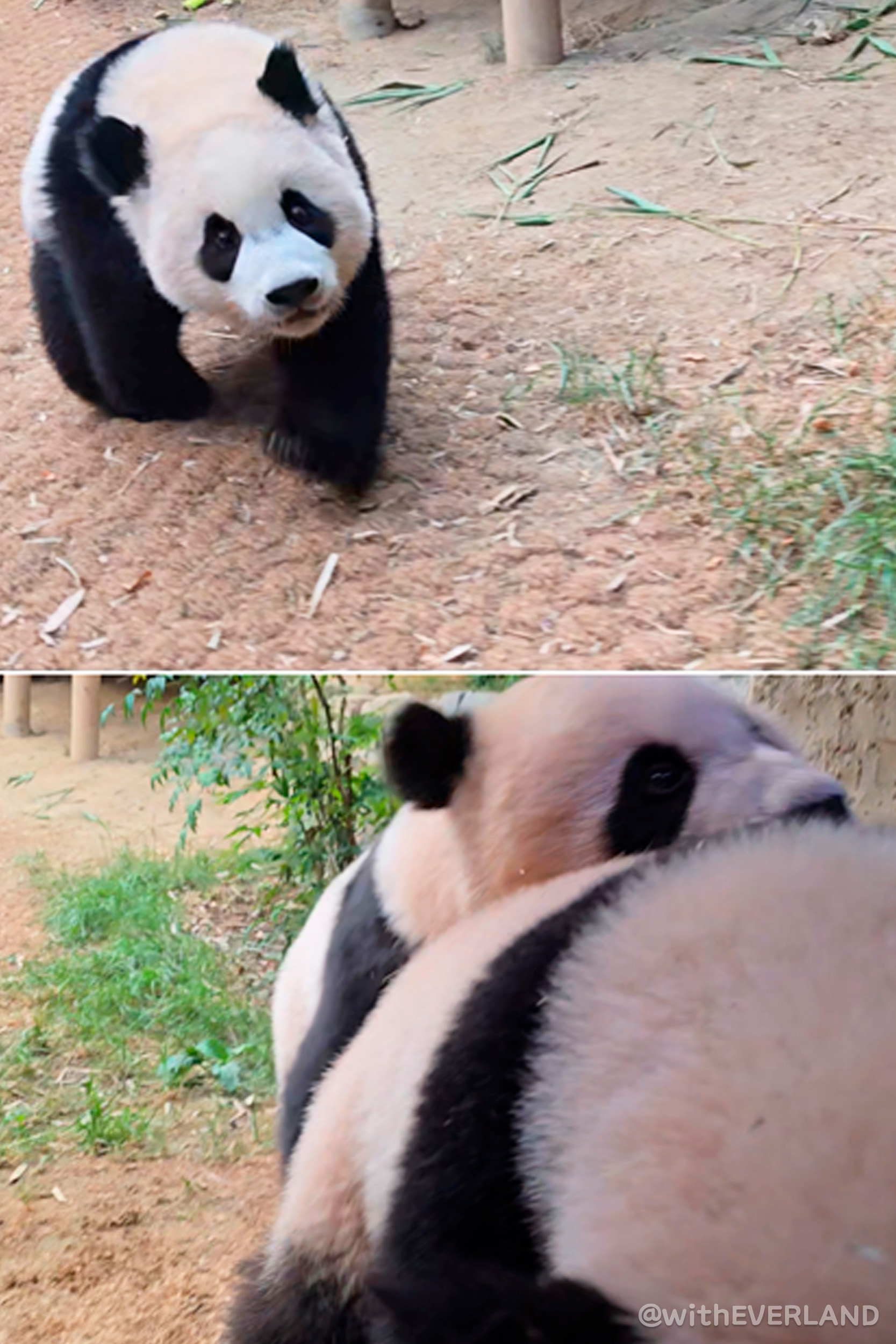 어제는 의심과 경계심을 싹 지운채 루이와 후이가 엄마보다 먼저 나란히 퇴근하는 모습을 보여주었답니다.