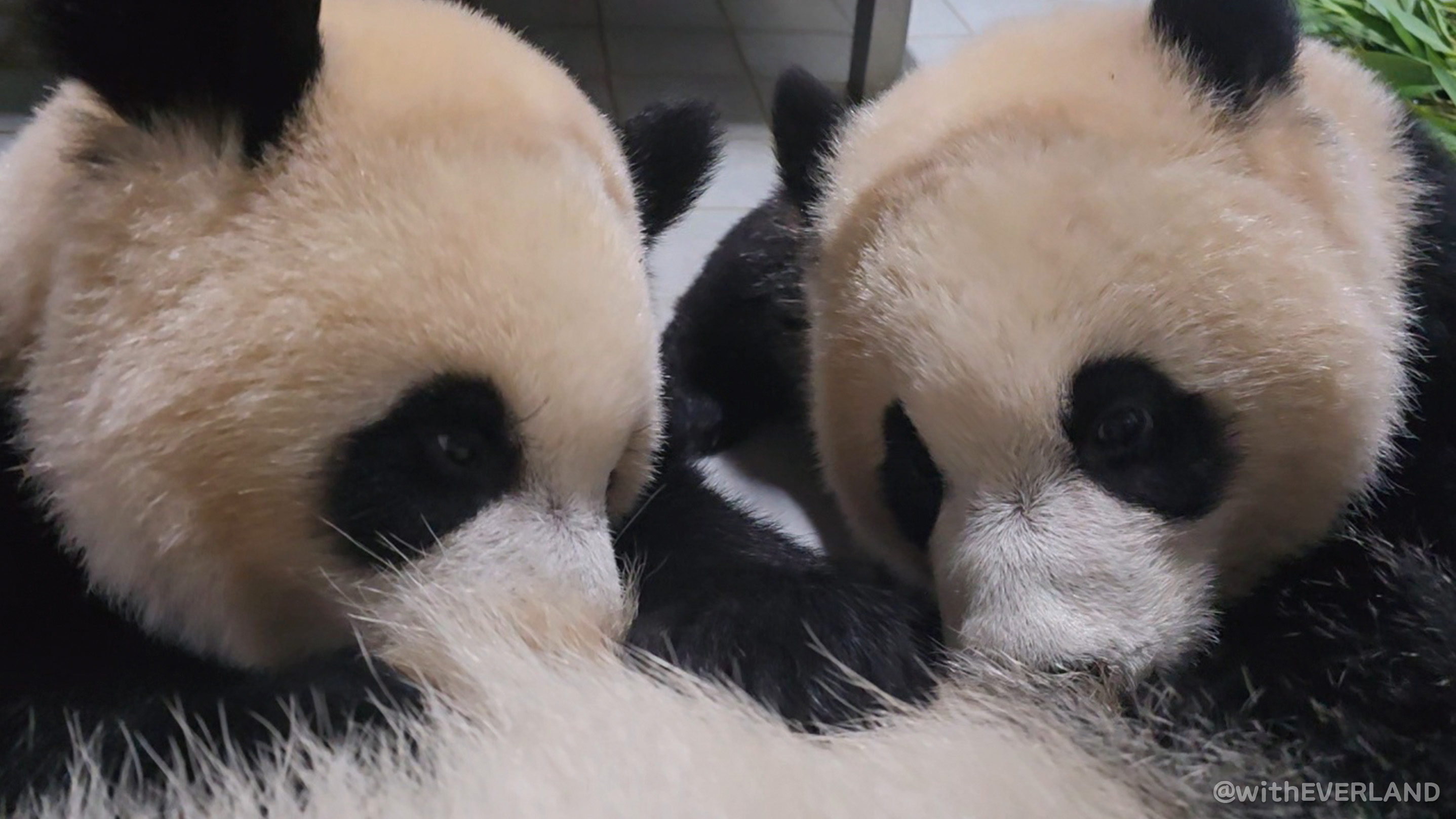 에버랜드는 7월에 쌍둥이 뿐만 아니라 엄마 아이바오(13일), 큰언니 푸바오(20일), 아빠 러바오(28일)까지 판다 가족 모두의 생일이 모여 있어 '바오패밀리 버스데이 페스타'를 다음달 4일까지 진행 중이다.